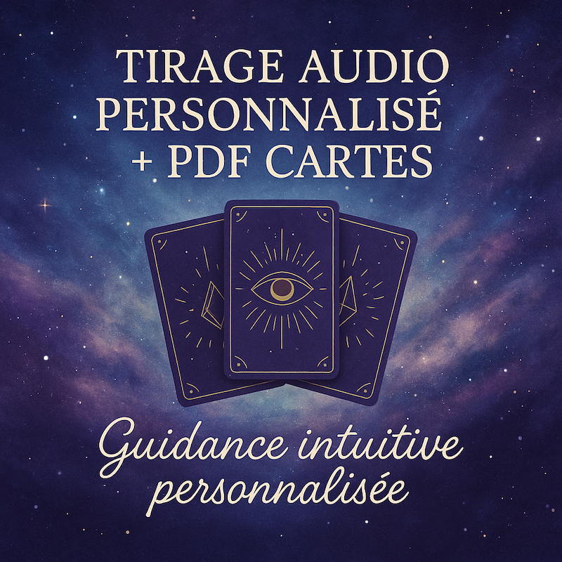 Enregistré avec soin, dans un espace d’écoute profonde. Tu y reçois les messages des cartes, les perceptions intuitives, les ressentis vibratoires, les images ou phrases clés qui émergent. C’est comme si ton âme te parlait doucement à l’oreille. Tu peux le réécouter autant de fois que tu veux, à ton rythme.